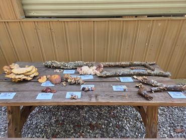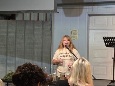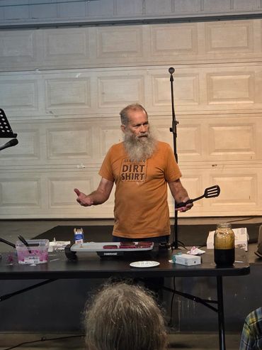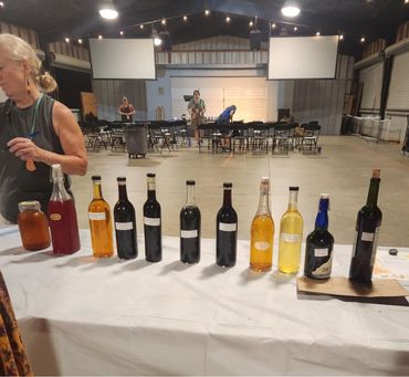 Anne-Marie Bilella and Michelle Withrow hosted the first annual event and a great weekend was had by all! There were educational walks/classes, foraging related vendors with books, herbs, tinctures, mushrooms, jams, jellies, and more! Friday night's Wild Food contest was won by Jennifer Mallin with her yummy twisted homemade bread stuffed with cheese and poke weed and garlic and other yumminess! Richard and Cassie Stevens won the Wild Spirits contest with their wild elderberry concoction! So many good foods served buffet style for the Wild Foods Feast on Saturday eve! We had bear with grits and raccoon and squirrel, venison and lamb meatballs ...Oh my! Autumn Olive Berry and other scrumptious dipping sauces to sample. There were wonderful fried oyster mushroom patties that were served with an amazing homemade garlicky aioli. Mushroom bread was a big hit, and the fried kudzu leaves were so crunchy. All of the side dishes were fantastic, from fried Jerusalem artichokes to wild salads and more! The desserts included pawpaw ice cream, mockernut torte, scuppernong pies, Goumi berry cheesecake and so.much.more! Homemade beverages were enjoyed( like roasted yaupon holly tea) and we sipped homemade spirits. Everything was simply delicious!